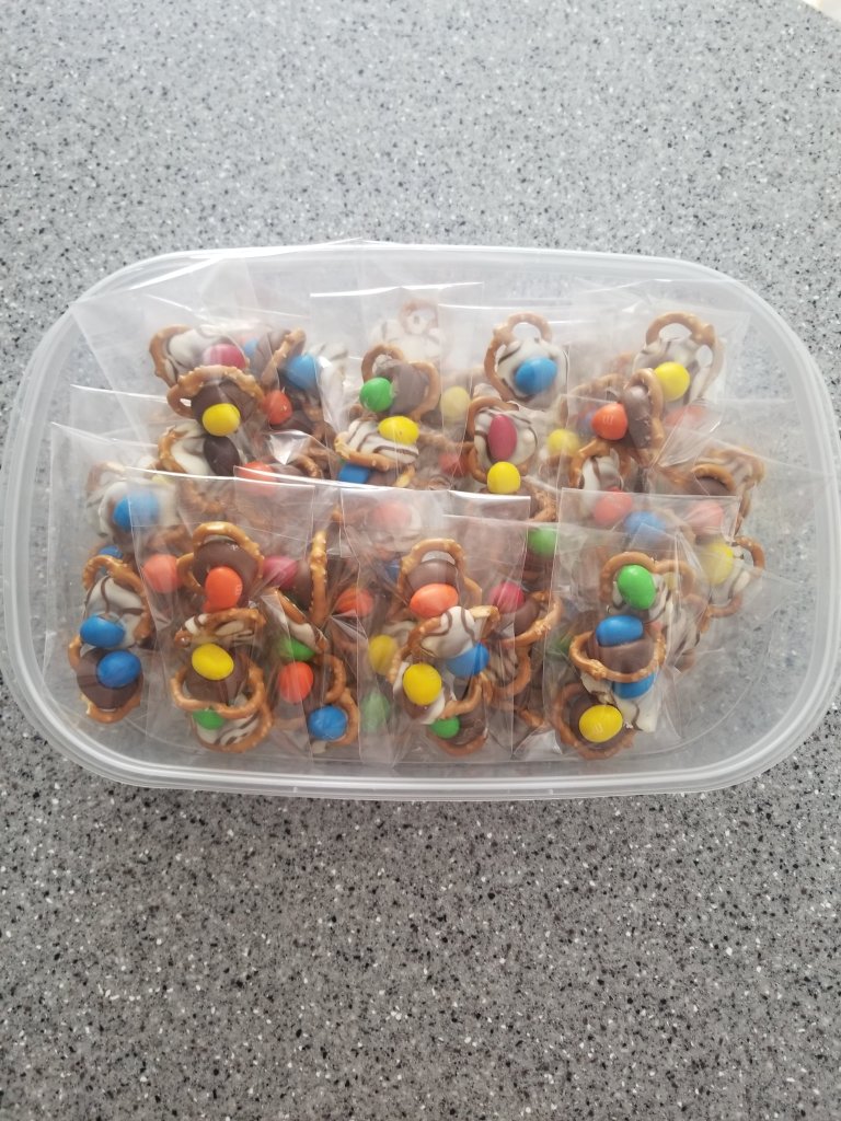Once they were cooled we were ready to package them up. She decided we should put 2 of each kind into these really cute and easy clear, baking bags I found on Amazon. This whole project was calm, easy and a perfect way for her to help give back.
