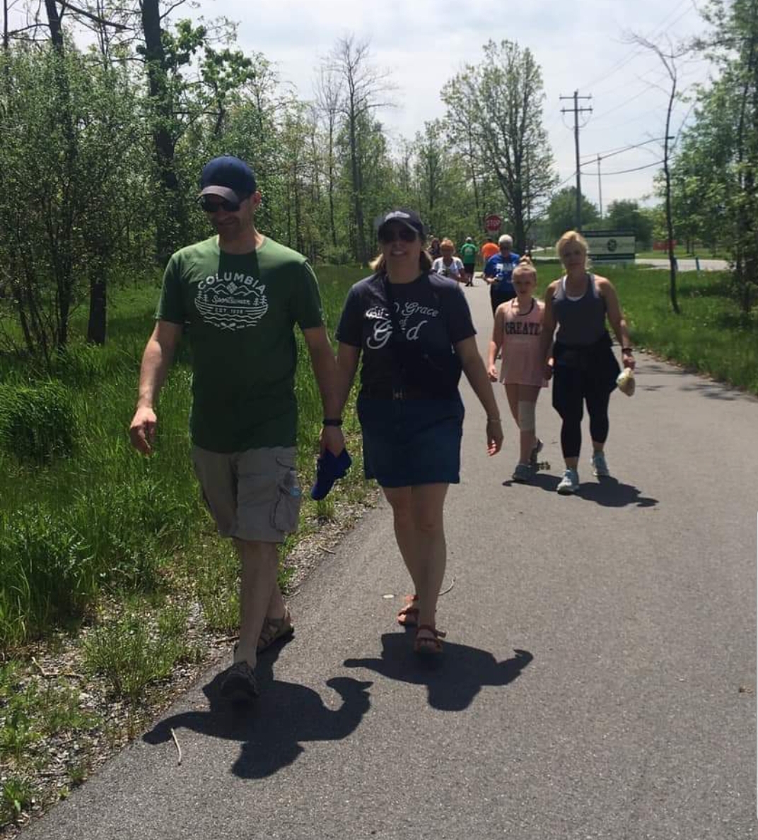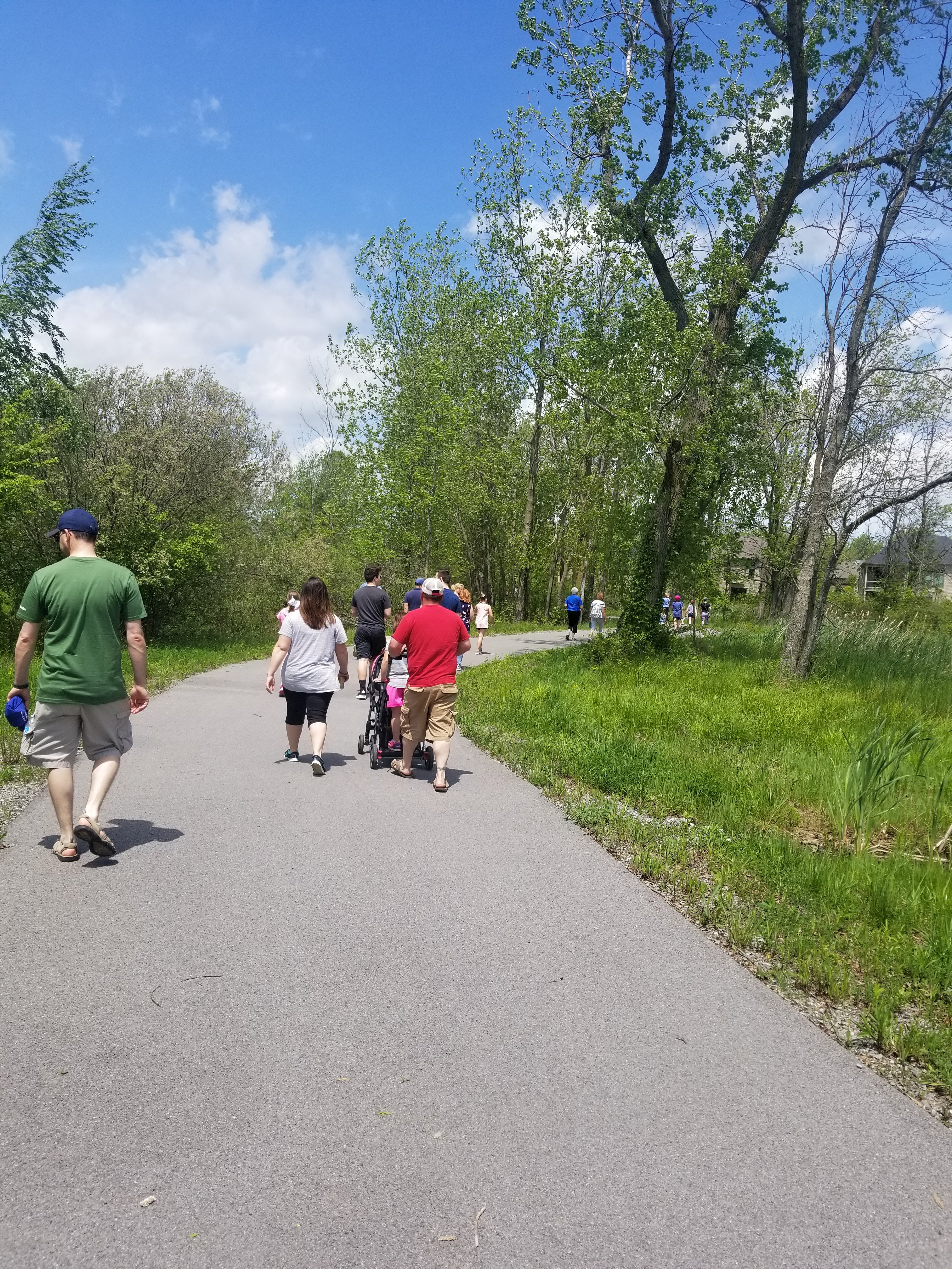 The walk was very manageable-two miles on a path in their neighborhood. This walk is by no means a challenge, but a lot of the kiddos that were feeling it. We let our daughter scooter. She was happy and we heard zero complaining. Some parents we carrying their kids. My back is too old for that! The weather was beautiful. It was the perfect temperature, clear skies and a breeze. My friend watched the weather all week. She was so nervous it would ran. Not a drop!