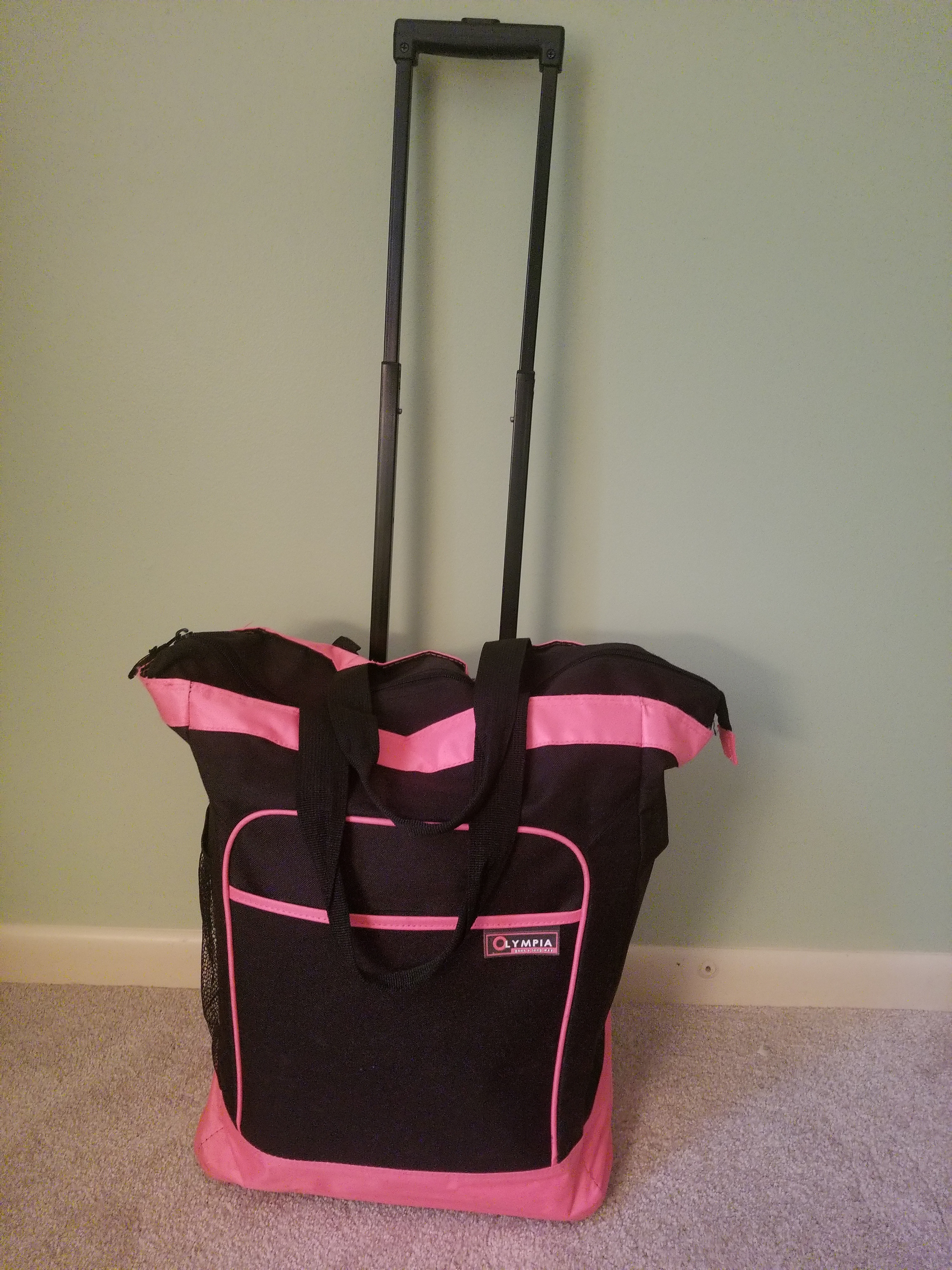 I know this style of bag is used by so many itinerant teachers. We have a lot of stuff sometimes and carrying the world on your back hurts, so why not roll it behind you. I tried this bag. It has pros and cons for me. I have a nickname for the rollie-The Rolling Bag of Shame. I am very aware that this is not a cute one or high end version, but it has wheels and that was my experiment. After a good, solid try it rolled right down to the basement.