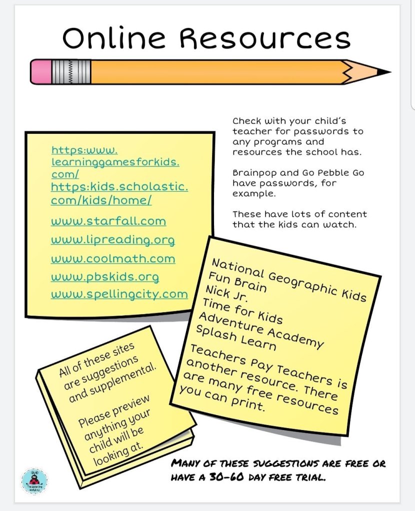 https://www.teacherspayteachers.com/Product/Home-E-learning-Suggestions-and-Resources-for-Family-Support-5326320