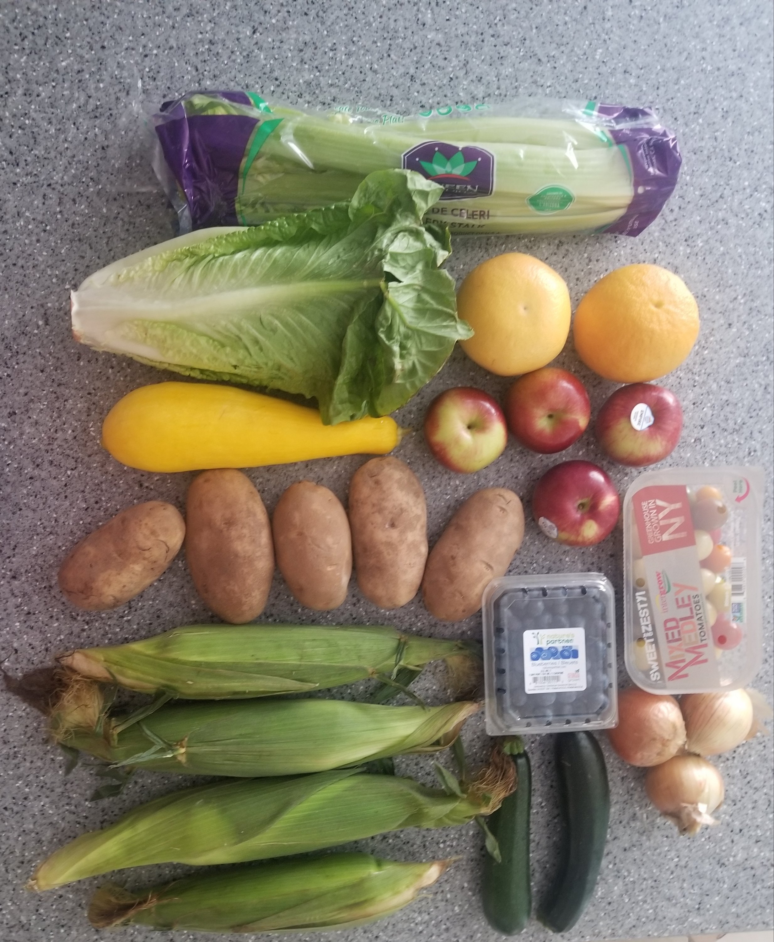 Every Saturday we do a local produce box. I order it Monday and we grab it Saturday. Well, we don’t actually grab it, someone who is gloved and masked puts it in the back of our vehicle. It is a you get what you get kinda of situation. Every week is different and no substitutions. I like it. I have been getting creative with the weekly selections.
