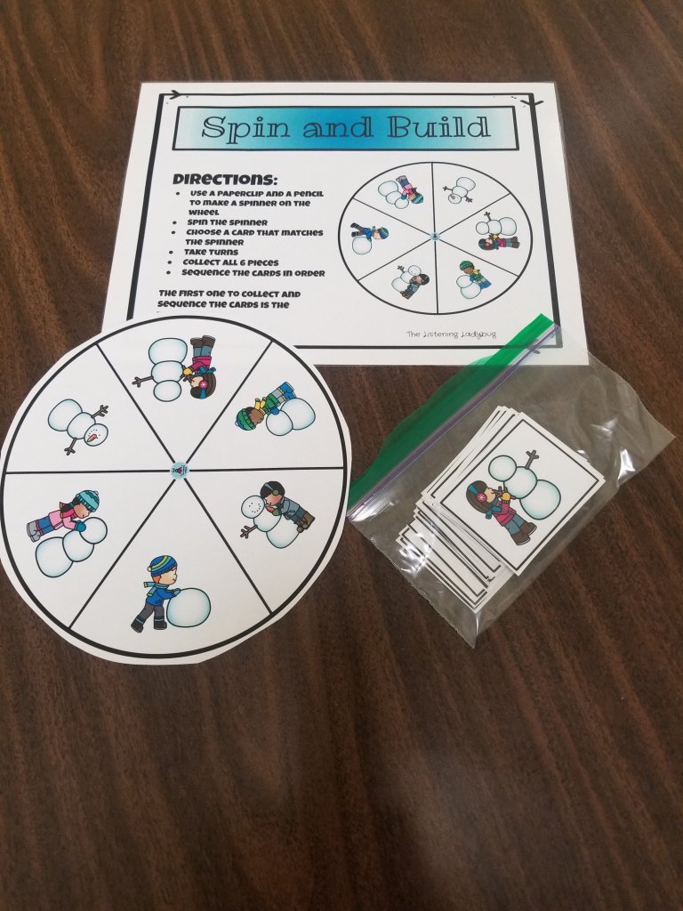 These sheets can be cut up into cards or leave as is. I made these to be in color, laminated and cut apart. A printer selection mistake at school…totally my fault, left me with a set in black and white. Instead of recycling, I decided to toss them in my bag for atleast one student to use. So happy. It worked out and was totally fun playing this Winter “Say”rades game. I made a “Say”rades game for each season. I wasn’t sure how the kids would react to playing, but so far this one is a hit!