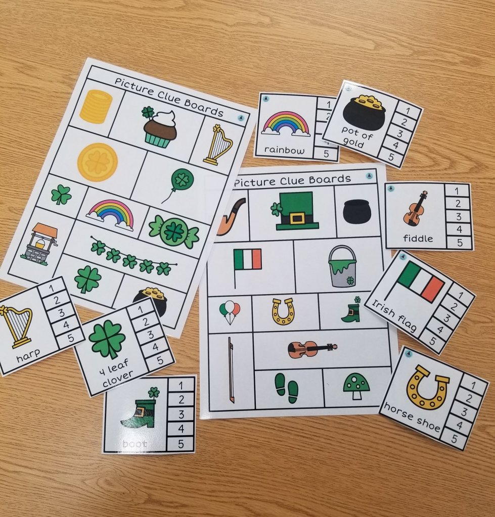 These are easy print and do task cards. I laminate, but you don’t have too. I also printed them on a black and white printer…in a pinch and still effective. I use the clue boards for a guide, but these work just as well with a student. We selected 1 of 12 pictures and then played the same way. When the picture was used, my student covered with a tiny post it note.
